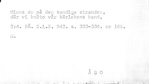 //// I //// Minns du på den sandiga stranden, där vi knöto vår kärlekens band, //// 2:4. PÄ. S.L.S. 542. s. 333-334. nr 166. N. //// ÅBO //// V, " //// ..x ¦ . ,. ¦ . ' __—$ i ////