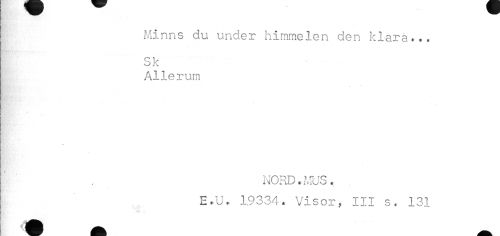 //// Minns du under himmelen den klara... Sk //// Allerum //// v> //// k i "W //// « //// A * //// NORD.MUS. //// » //// E.U. 1.9334. Visor, III s. 131 ////
