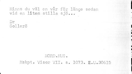 //// ¦ //// Minns du väl en vår för länge sedan } //// vid en literi: stilla sjö... * //// • i //// //// /Dr //// Sollerö I //// » I //// * | //// v i //// t ¦ //// P //// i! //// B //// P //// i //// ' NORD.MUS. t //// Mskpt. Visor VII. s. 1073. E.U.30615 j //// ! //// k ////
