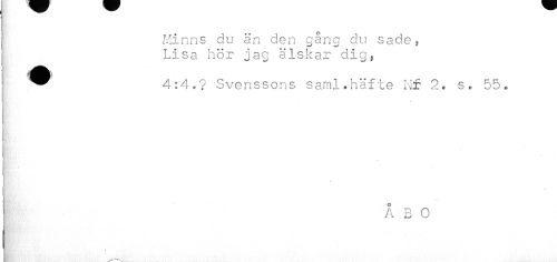 //// i //// ; Minns du än den gång du sade, //// Lisa hör jag älskar dig, //// * ¦ m) //// 4:4.? Svenssons saml.häfte Nf 2. s. 55. //// ÅBO //// I ////