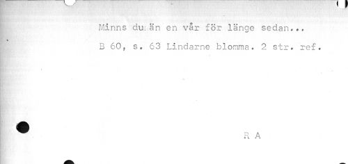 //// i Minns du: än'en vår för länge sedan.». //// K //// B 60f s. 63 Lindarne blomma. 2 str» ref. //// R A ////