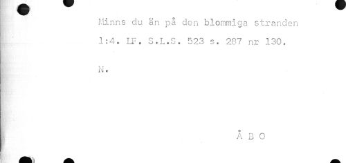 //// ¦ JF //// Minns du än på den blommiga stranden 1:4. LF. S.L.S. 523 s. 287 nr 130. //// N. //// i ÅBO ////