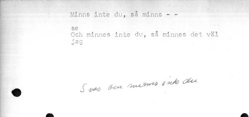 //// « //// K,'. • ^ -./V'¦ .-w- > ' ' -': , « \ : ' '' <'•''¦ 'v A ¦;,'> *¦ ' ' ..'• .v; .> -' //// o //// Minns inte du, sa minns - - //// i //// se //// I Och minnes inte du, så minnes det väl //// 1 jag //// K //// } //// Ki //// ^ V //// ¦il //// ^B fl //// ¦ ¦ ¦ ////