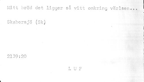 //// Mitt bröd det ligger så vitt omkring vårisen... j //// ¦ //// f i //// i ¦ //// Skabersjö (Sk) //// I //// i //// c * //// I //// i //// 2139:20 //// f //// L U F //// k ////