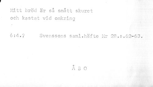 //// Mitt bröd ä.r så smått skuret och kastat vid omkring //// 6:4.? Svenssons saml.häfte Nr 28.s.62-63. //// ÅBO ////