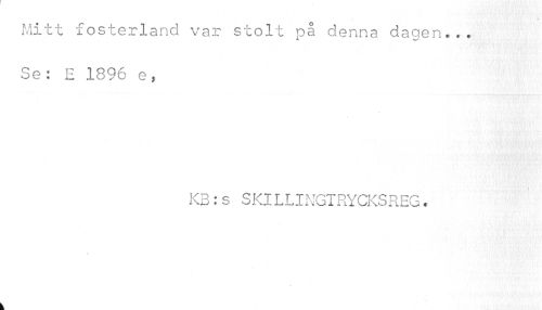//// • JÄ" //// Mitt fosterland var stolt på denna dagen... Se: E 1896 e, //// K3:s SKILLINGTRYCKSREG. //// k ////