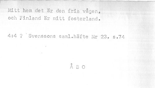 //// Mitt hem det är den fria vågen, och Finland är mitt fosterland. //// 4:4 ? Svenssons saml.häfte Nr 23. s.74 //// ÅBO ////