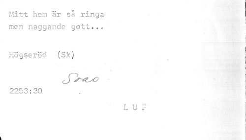 //// Mitt hem är så ringa //// i //// men naggande gott.,. //// i i //// Högseröd (Sk) 2253:30 //// L U F //// i //// k ////