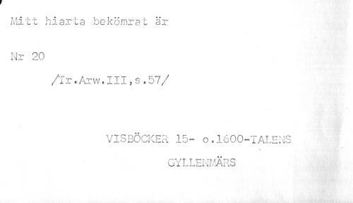 //// Mitt hia.rta bekömrat är Nr 20 //// /Tr.Arw. III* s . 57 //// /v //// VISBÖCKER 15- o.1600-1ALENS //// GYLLENMÄRS ////