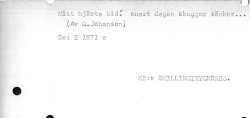 //// Mitt hjärta bid. snart dagen skuggor sänker*.. (Av G.Johanson) //// I" • //// Se: E 1871 e //// 1/ KB : s SKI LLINGTRYCKS REG. //// i ////