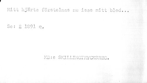 //// Mitt hjärta förstelnas nu isas mitt blod... //// Se: E 1891 q, //// KB:s SKILLINGTRYCKSREG. ////
