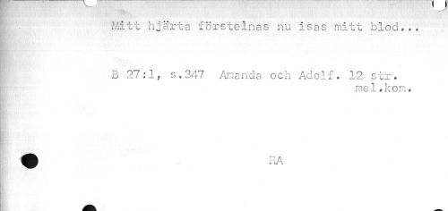 //// Mitt hjärta förstelnas nu isas mitt blod... //// i //// B 27:1, s.347 Amanda och Adolf. 12 str. //// mel.kom. ////
