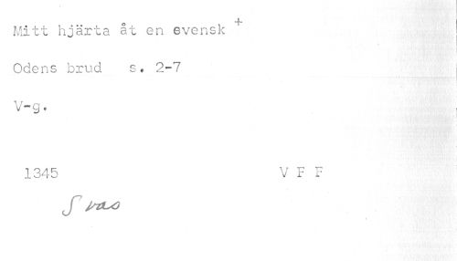 //// Mitt hjärta åt en svensk + //// i I //// Odens brud s. 2-7 //// i //// V-g. , //// i //// ( //// 1345 V F F //// J" Mtiuö //// l ////