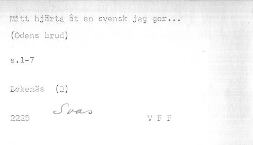 //// Mitt hjärta åt en svensk jag ger*** //// (Odens brud) //// * \ * //// t //// s • 1.-7 //// Bokenäs (b) //// c J //// 2225 V F F ////