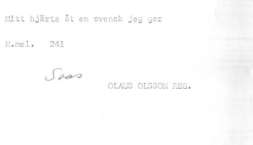 //// Mitt hjärta åt en svensk jag ger M.mel. 241 //// cj ^^ //// OLAUS OLSSON REG» //// * ////