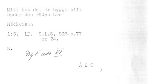 //// Mitt hus det är byggt allt under den röd an foio //// Näckvisan //// 1:3. LF. S.L.S. 523 s.77 //// nr 24. //// ÅBO //// > ////