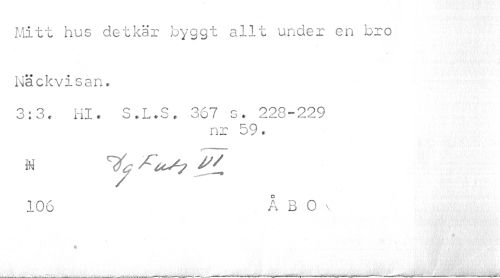 //// Mitt hus detkär byggt allt under en bro Näckvisan. //// 3:3, Hl. S *L?S * 367 s. 228-229 //// nr 59. //// M % ^a^p //// 106 Å B O v //// • 'i•,<:/ v •• - v 'M. v ';::.. .''-.I '<if."4 r i' //// __ __ . ___T____„_____^ »..»to,-------.-lUfcL,^-----,------,------—-----_-—--- —------ ////