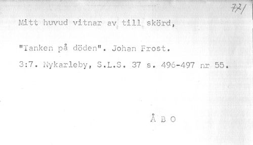 //// 77y //// Mitt huvud vitnar av. till skörd, //// "Tanken på döden". Johan Frost. //// 3:7. Nykarleby, S.L.S. 37 s, 496-497 nr 55. //// ÅBO ////
