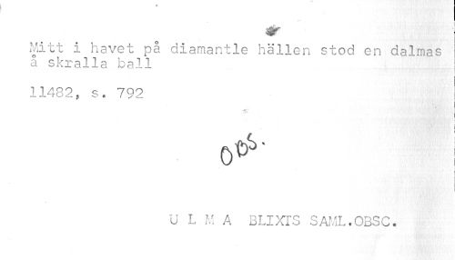 //// Mitt i havet på diamantle hällen stod en dalmas //// a skralla ball //// i //// j //// 11482» s. 792 //// : . :,;|f' I //// t //// \ t //// i i //// U L M A BLIXTS SAML.OBSC. ////