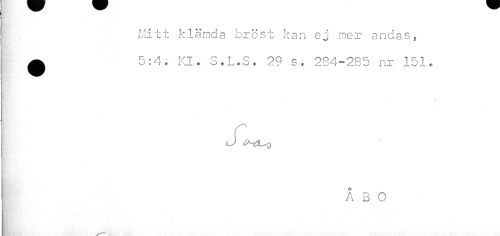 //// Mitt klämda brös t kan gj mer andas, //// 0 5:4, Kl. S.L.S. 29 s. 284-285 nr 151. //// * * //// i L //// ÅBO //// m //// 4 ////