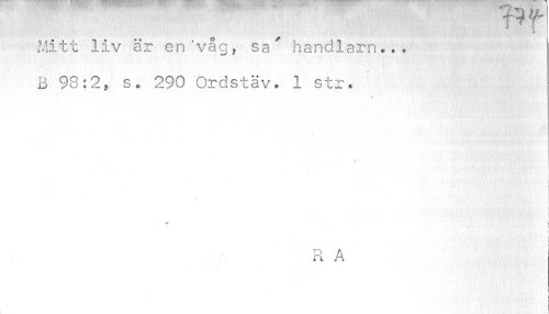 //// T 7 T //// b //// Mitt liv är en'våg, sa' handlarn... B 98:2, s. 290 Ordstäv. 1 str. //// « //// | //// c //// i f //// i //// R A //// i ////
