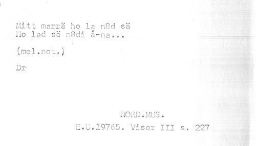 //// » //// Mitt marrä ho la n8d sä //// Ho lad sä nBdi å-na... //// * //// (mel.not«) Dr //// NORD.MUS. E.U.19765. Visor III s. 227 ////