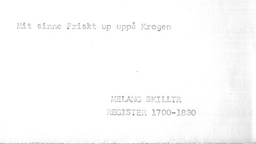 //// Mit sinne Friskt up uppå Krogen //// ME LANG SKILLTR REGISTER 1700-1830 //// ¦ ' .. K ////