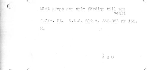 //// c //// | Mitt skepp det står färdigt till att //// i segla //// * 4:2+r, PA. S.L.S. 512 s. 362-363 nr 163. //// N • //// i //// ÅBO //// //// /