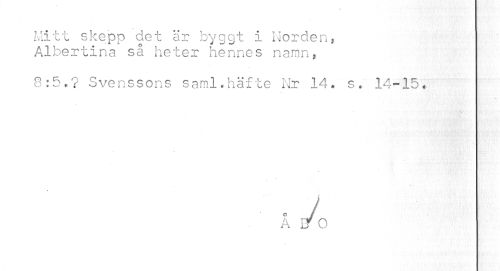 //// Mitt skepp det är byggt i Norden, Albertina så heter hennes namn, //// 8:5.? Svenssons saml. häfte Nr 14. s... 14-15. //// • j //// A Er O ////
