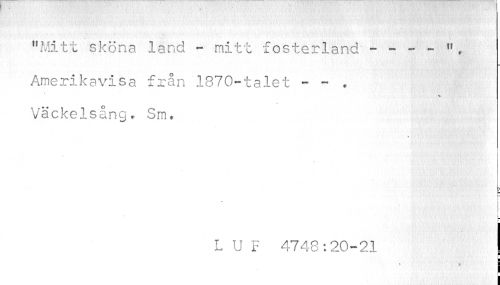 //// "Mitt sköna land - mitt fosterland" //// Amerikavisa från 1870-talet - - . //// i //// Vä eke 1 sång. Sm. //// i I f r //// * i //// L U F 4748:20-21 I //// ? £ //// I ////