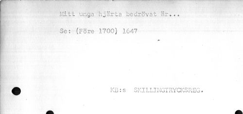 //// i Vitt unga hjärta bedrevat är.* * //// 1 • //// Se: (Före 1700) 1647 //// ^HId-v' //// i //// ¦Sv»'^. r //// I A KB: s SKILLINGTRYCKSREG. ////