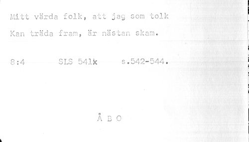 //// B //// I //// Mitt värda folk, att jag som tolk f //// r //// Kan träda fram, är nästan skam» //// i //// 8:4 SLS 541k s.542-544. \ //// ¦ //// r i //// I //// j //// I //// Å B O //// I //// i //// k ////