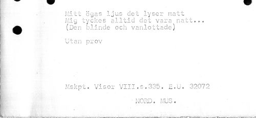 //// [ • Mitt ögas ljus clet lyser matt //// Mig tyckes alltid det vara natt... | ^^ (Den blinde och vanlottade) //// I Utan prov //// r Mskpt. Visor VIII.s.335. E.U. 32072 //// ; NORD. MUS. ////