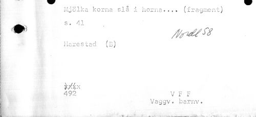 //// Mjölka korna sia i norna»... (fragment) ^ s. 41 //// Harestad (B) //// [ //// 492 v F F //// | Vaggv. barnv. //// » • //// Al ( ,, " * * •*. . ... —¦----- . , .'ik < ' . • ////