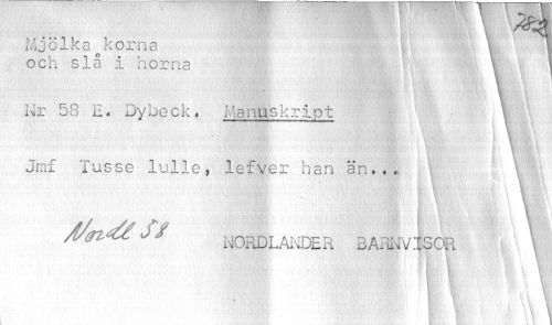 //// Mjölka okorna * - 1! \ 1 //// och slå i hörna ! i i : !' 1 III II I I //// v //// Nr 58 E> Dybeck. Manuskript //// , w ; \ ' \ //// Jm£ Tus-se lu.lle, lefver han än... //// ' * WOr JjLMtDE R B A* iIW IS OR f1 \ //// ¦ m v i % v . • //// t fe . * f; //// Äli ; - ' Im w S; fe \ te //// n »v ¦ v //// K v //// it //// * •' //// \ ////