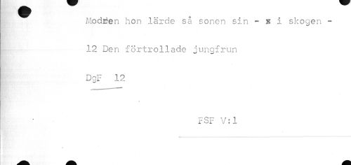//// Modöen hon lärde så sonen sin - x i skogen -12 Den förtrollade jungfrun DgF 12 //// FSF V:1 //// * //// * ////