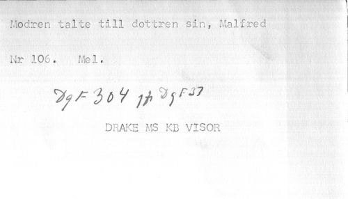 //// Modren talte till dottren sin, Malfred Nr 106. Mel. //// //VJ7 //// DRAKE MS KB VISOR ////