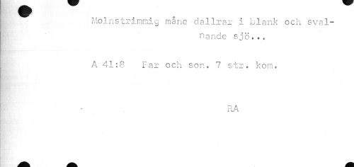 //// Molnstrimmig måne dallrar i blank och svalnande sjö. .. //// Ä 41:8 Far och son. 7 str. kom. //// RA ////