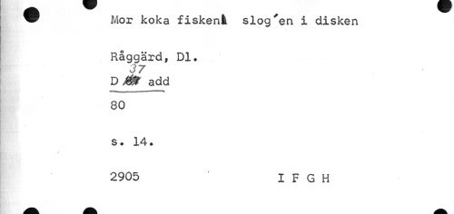 //// w Mor koka fiskenå slog'en i disken //// Råggärd, Dl. 37 //// T> Étt add //// T I II _____ //// 80 //// s. 14. //// • —* //// 2905 I F G H ////