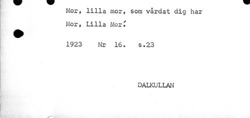 //// Mor, lilla mor, som vårdat dig har Mor, Lilla Mor' //// 1923 Nr 16. s.23 //// DALKULLAN ////