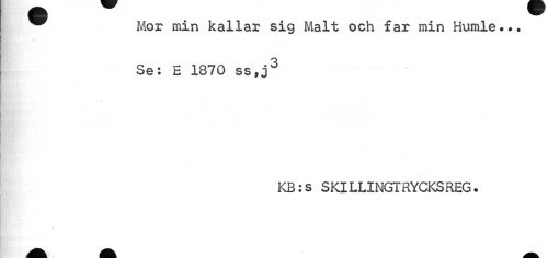 //// Mor min kallar sig Malt och far min Humle*•• //// ? //// Se: E 1870 ss,j3 //// KB:s SKILLINGTRYCKSREG. ////