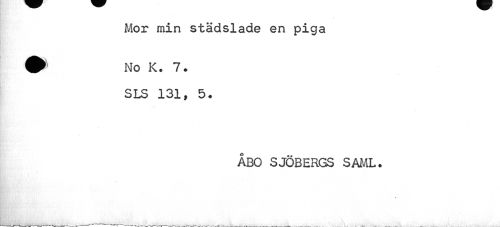 //// Mor min städslade en piga //// ? No K. 7. //// SLS 131, 5. //// ÅBO SJÖBERGS SAML. //// % ////