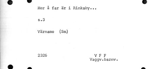 //// Ir //// Mor å far är i Rinkaby... //// < //// s.3 //// Värnamo (Sm) //// 2326 V F F //// Vaggv.barnv. ////