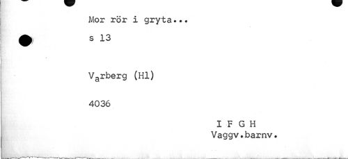 //// Mor rör i gryta.•• //// % //// Varberg (Hl) 4036 //// IF GH Vaggv.barnv. ////