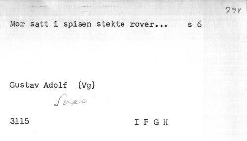 //// Mor satt i spisen stekte rover... s 6 //// ! i //// Gustav Adolf (Vg) //// ji/^yo //// 3115 I F G H ////