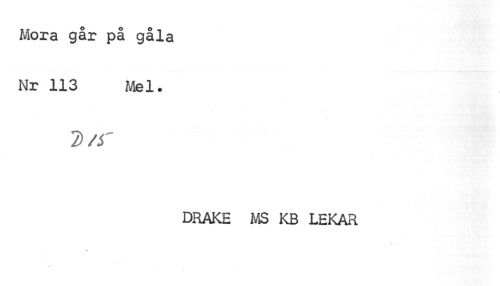 //// Mora går på gåla Nr 113 Mel. //// 2>/r //// DRAKE MS KB LEKAR //// ? ////