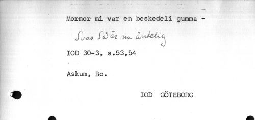 //// Mormor mi var en beskedeli gumma - //// IOD 30-3, s.53,54 Askum, Bo. //// ^ IOD GÖTEBORG //// fl ////