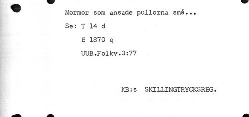 //// ^^ Mormor som ansade pullorna små... //// Se: T 14 d E 1870 q UUB.Folkv.3:77 //// KB:s SKILLINGTRYCKSREG. //// 4 * * ^ f „ «* ////