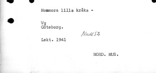 //// Mommors lilla kråka -Göteborg. //// /i/suUSZ //// Lekt. 1941 //// NORD. MUS. //// !{ < > -1 i ,>v : v « * * //// i ////