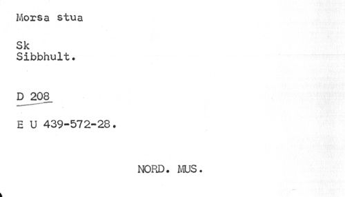 //// Morsa stua Sk //// Sibbhult. D 208 //// E U 439-572-28. //// NORD. MUS. ////